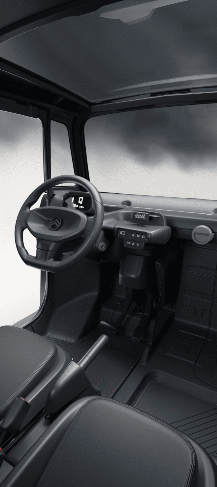 - Boîte de vitesses automatique (i) Conçue pour garantir une conduite fluide et sans effort. ami est équipée de trois boutons intuitifs (marche arrière, neutre, marche avant) pour une mobilité simplifiée et sereine, même en ville.
